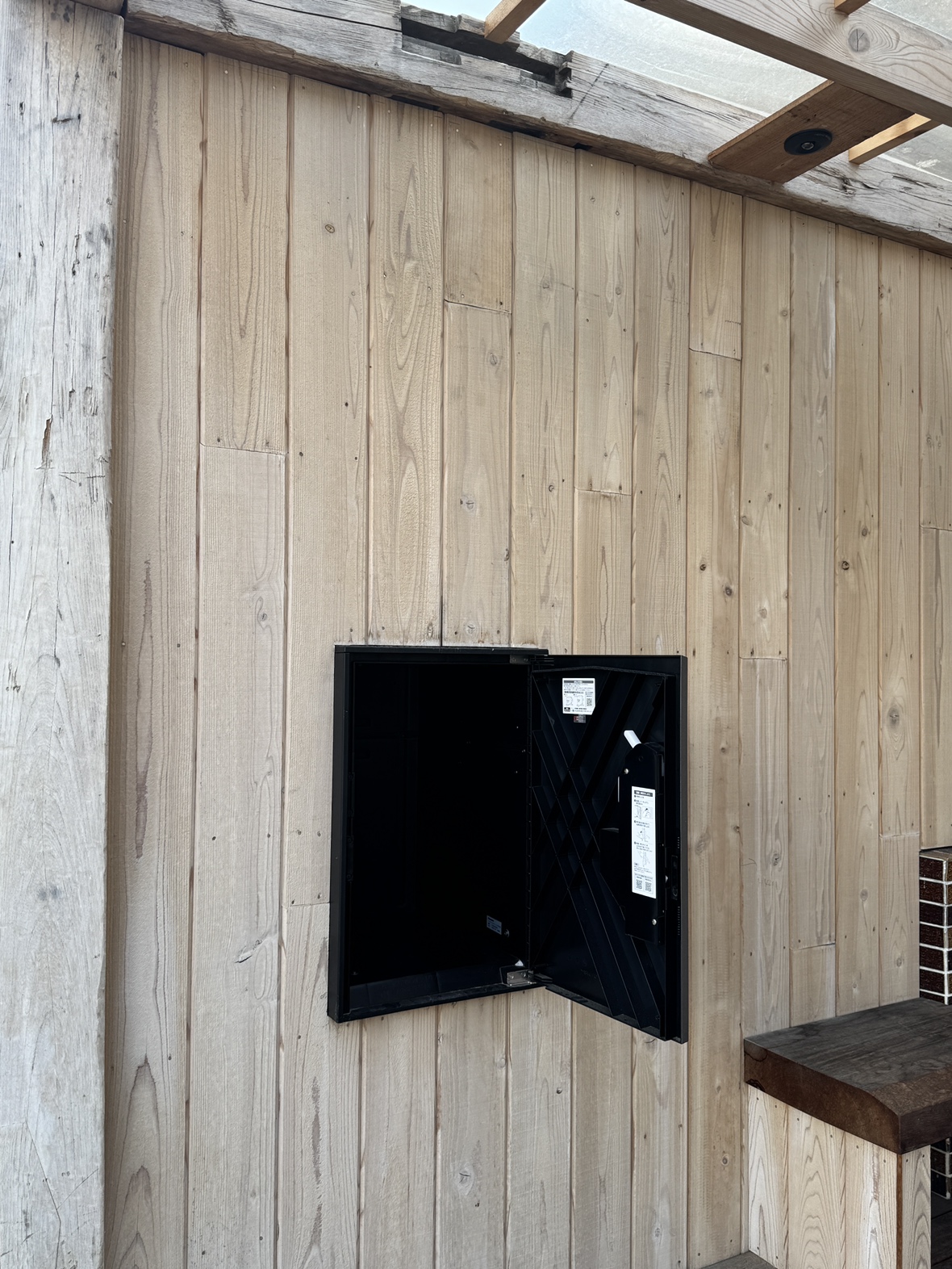 杉にシーウー塗装を施した板を使っています。木材に塗布することで、自然の中で木自身は持つ保護機能(シリコンシールド)と同様の効果を作り出します。