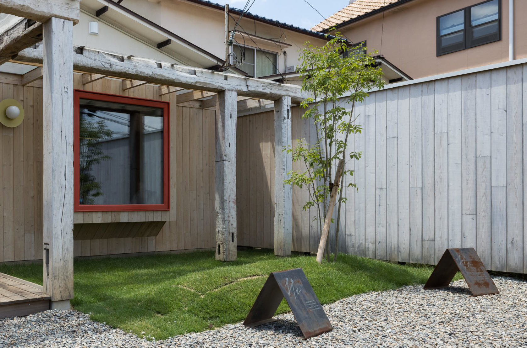 芝は高麗芝、植栽はアオダモ。