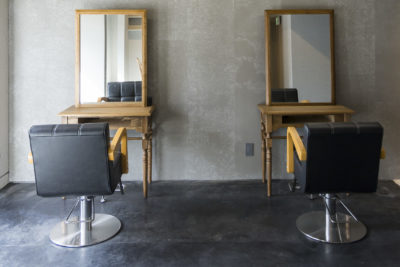 飲食店を美容室にスケルトン改修|既存床×新設土間の融合で高級感ある空間|姫路市西庄