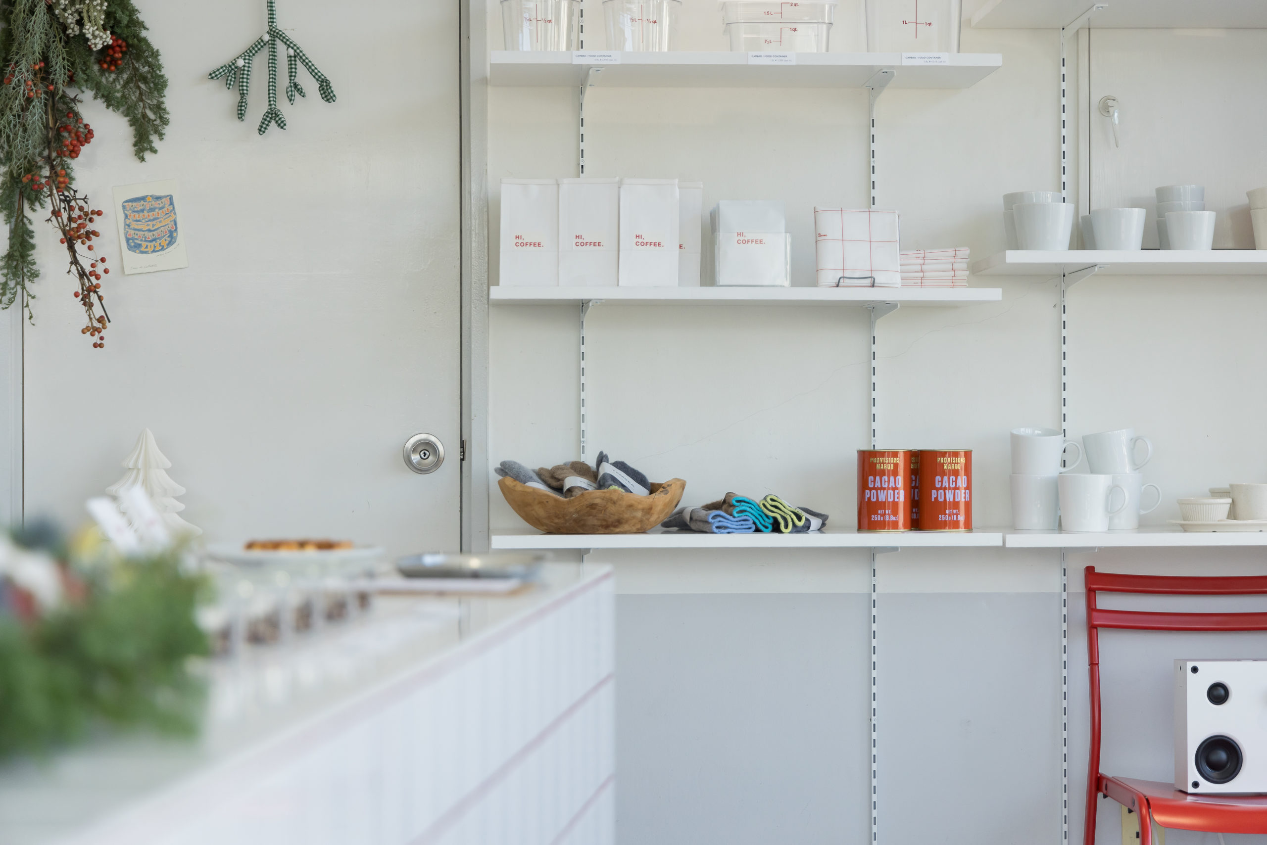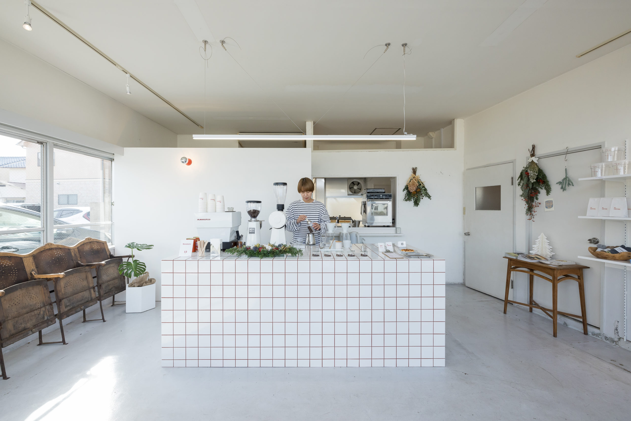 店舗内の経年した白と相まって清々しいです。
