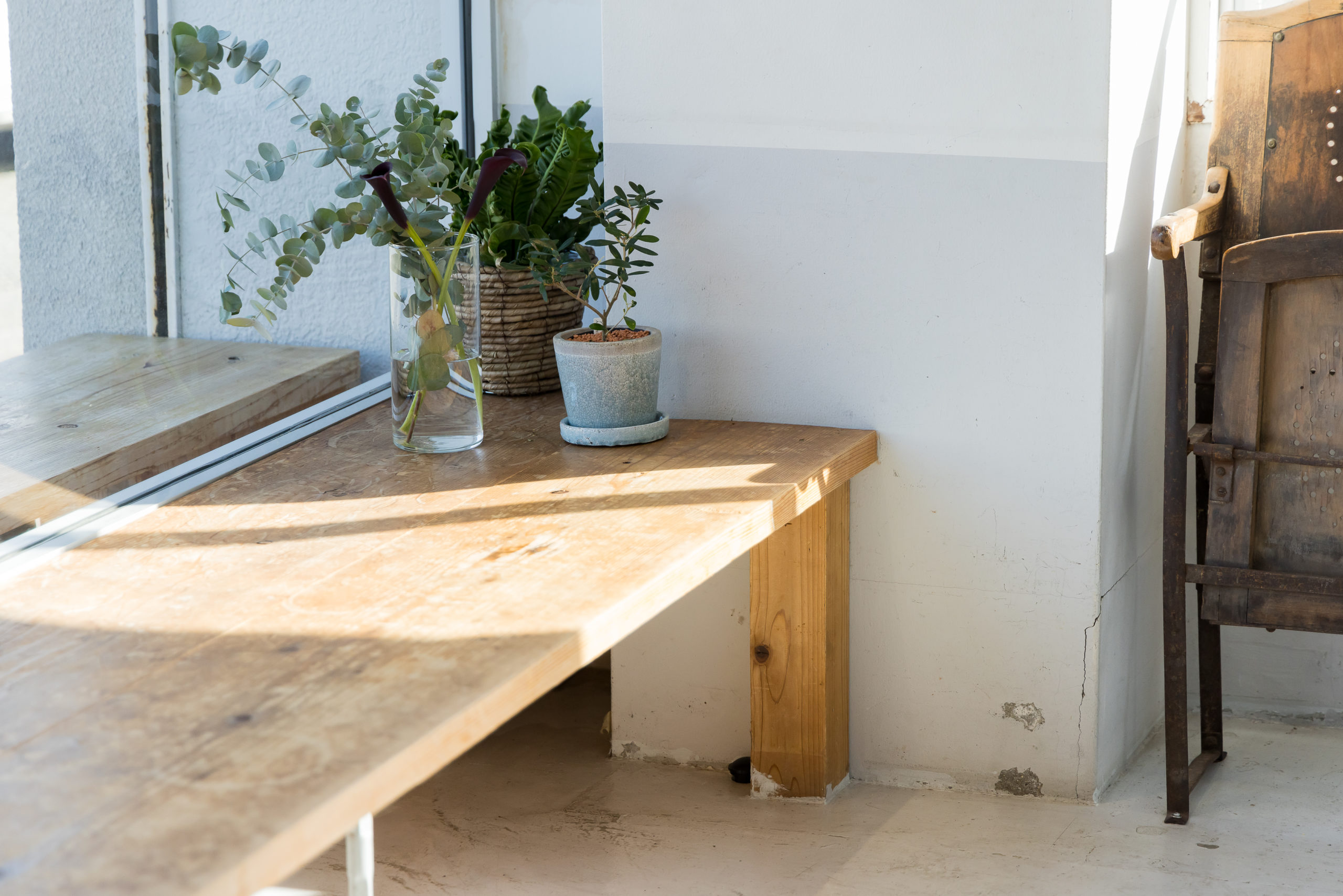 ぬくもりを感じられる木のベンチ